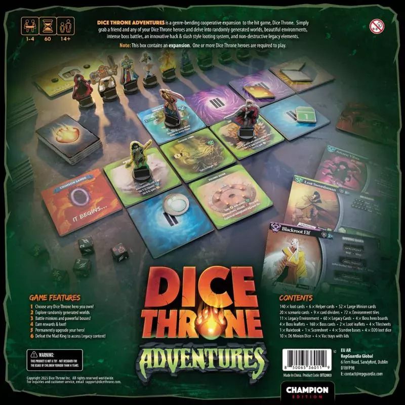 Dice Throne Adventures е кооперативно разширение, което напълно променя правилата на играта. Изберете любимите си герои от Dice Throne и се впуснете в изследване на произволно генерирани светове, напрегнати битки с босове и иновативна hack & slash система за плячка (loot).