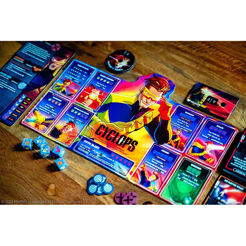 In Marvel Dice Throne: X-Men, you become one of four of Marvel's iconic X-Men, including Cyclops, Rogue, Gambit, and Jean Grey!