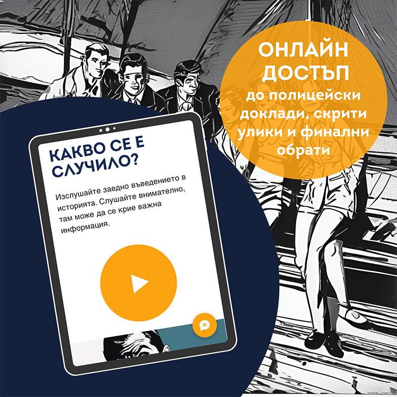 - Полицейски доклади, скрити улики и финални обрати ще намериш онлайн чрез специалния QR код, включен в комплекта.