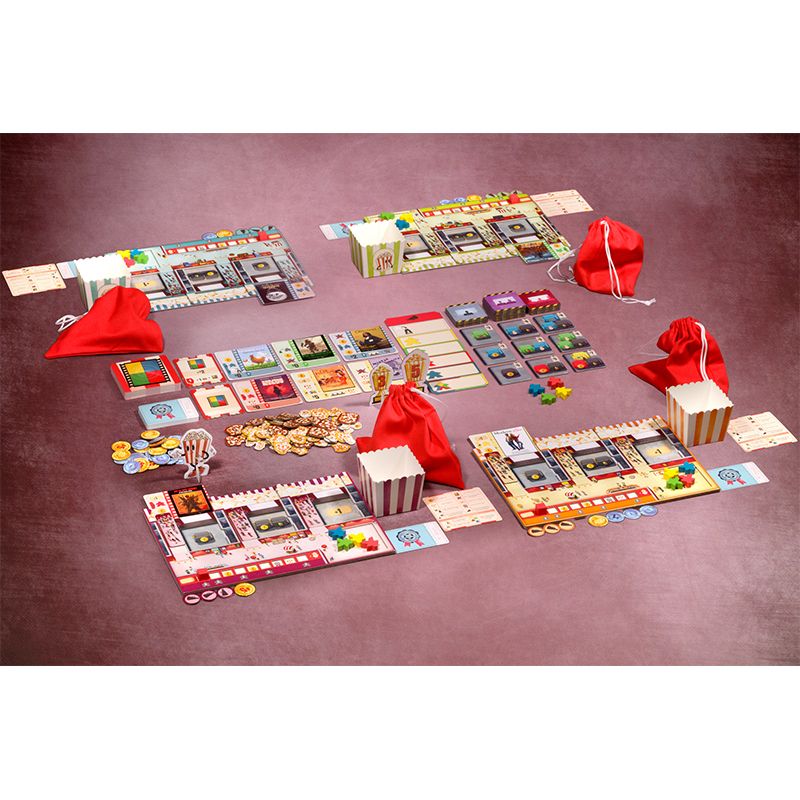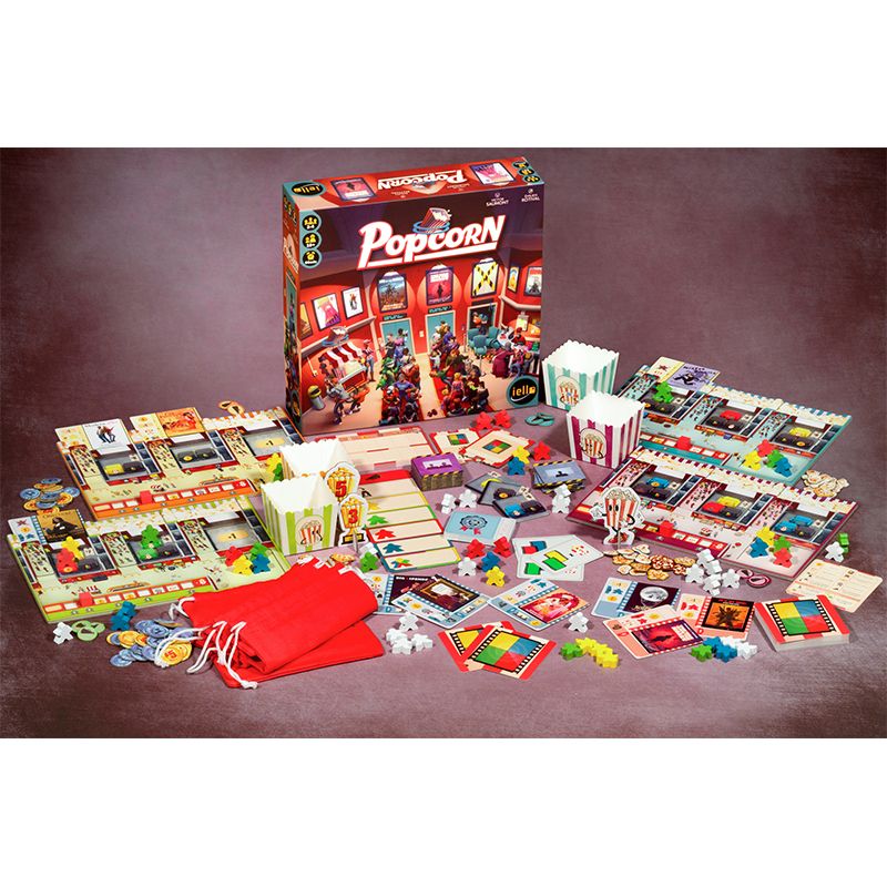 В играта Popcorn всеки играч управлява собствен киносалон и цели да привлече колкото може повече зрители, като програмира качествени филми, модернизира залите си и умело организира прожекциите. Играта се развива в девет кръга, във всеки от които имаш възможност да: закупиш нов филм, построиш/надградиш салон и привлечеш нови гости чрез реклама. След това идва прожекцията — теглиш гостите от торбата, слагаш ги на подходящите места и активираш специални способности.