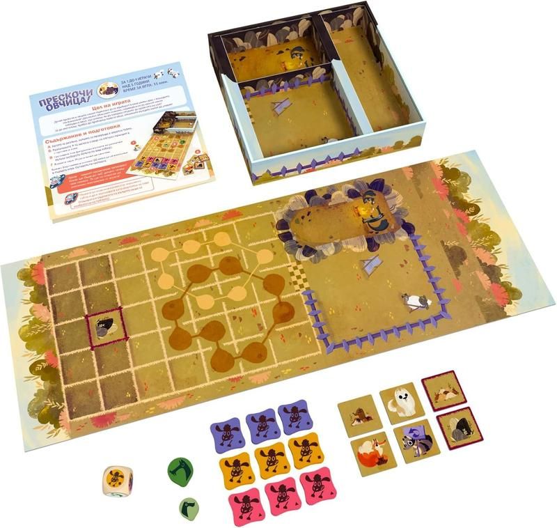"Прескочи овчица" е игра, която може да се играе самостоятелно или в екип, и е подходяща за деца от 5-годишна възраст. В тази кооперативна игра трябва да върнете колкото се може повече овце в кошарата, преди вълците да ги хванат!