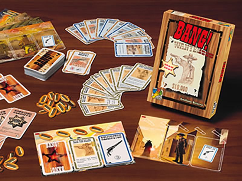 The card game BANG! recreates an old-fashioned spaghetti western shoot-out, with each player randomly receiving a Character card to determine special abilities, and a secret Role card to determine their goal.