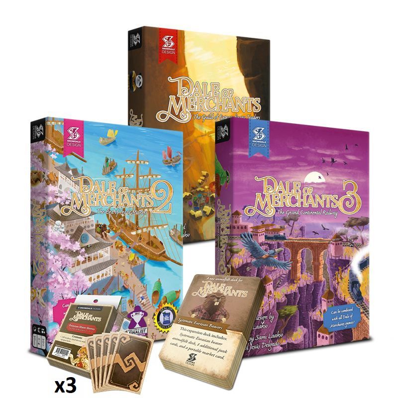 ТОЗИ БЪНДЪЛ СЪДЪРЖА ПРОДУКТИТЕ DALE OF MERCHANTS 1, DALE OF MERCHANTS 2 и DALE OF MERCHANTS 3 + РАЗШИРЕНИЕТО BEAVERS + ПРОТЕКОРИ ЗА ВСИЧКИ КАРТИ ОТ ЦЕЛИЯ КОМПЛЕКТ