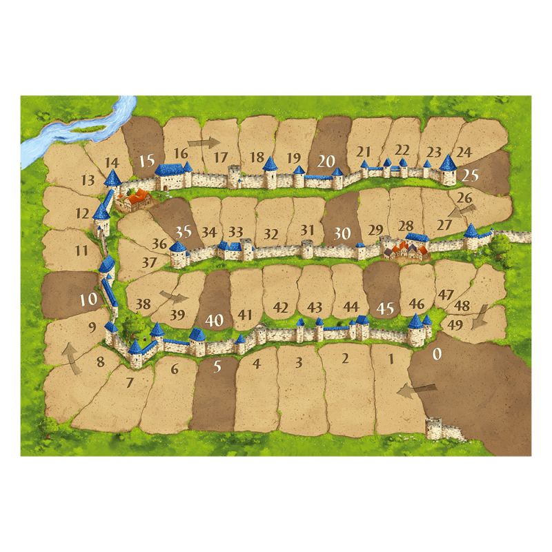 Carcassonne is a tile-placement game in which the players draw and place a tile with a piece of southern French landscape on it. The tile might feature a city, a road, a cloister, grassland or some combination thereof, and it must be placed adjacent to tiles that have already been played, in such a way that cities are connected to cities, roads to roads, etcetera. Having placed a tile, the player can then decide to place one of his meeples on one of the areas on it: on the city as a knight, on the road as a robber, on a cloister as a monk, or on the grass as a farmer. When that area is complete, that meeple scores points for its owner.