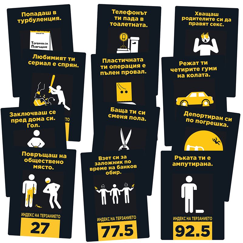 Нека си го кажем направо - на всеки от нас му се случват доста скапани неща, нали? Може обаче да им се посмеем, без да се терзаем. На картите ще откриеш някои наистина гаднички събития, които ти ще трябва да подредиш според травмата, която биха нанесли. Дали слънчево изгаряне от втора степен е ПО-ДОБРО или ПО-ЛОШО от това да изпуснеш телефона си в тоалетната? А дали е ПО-ЛОШО от това да ти нарежат гумите на колата? Ако индексът на терзанието, отбелязан на картата, съвпада с твоето мнение, може да я запазиш. Ако подредиш правилно 10 карти, печелиш играта.